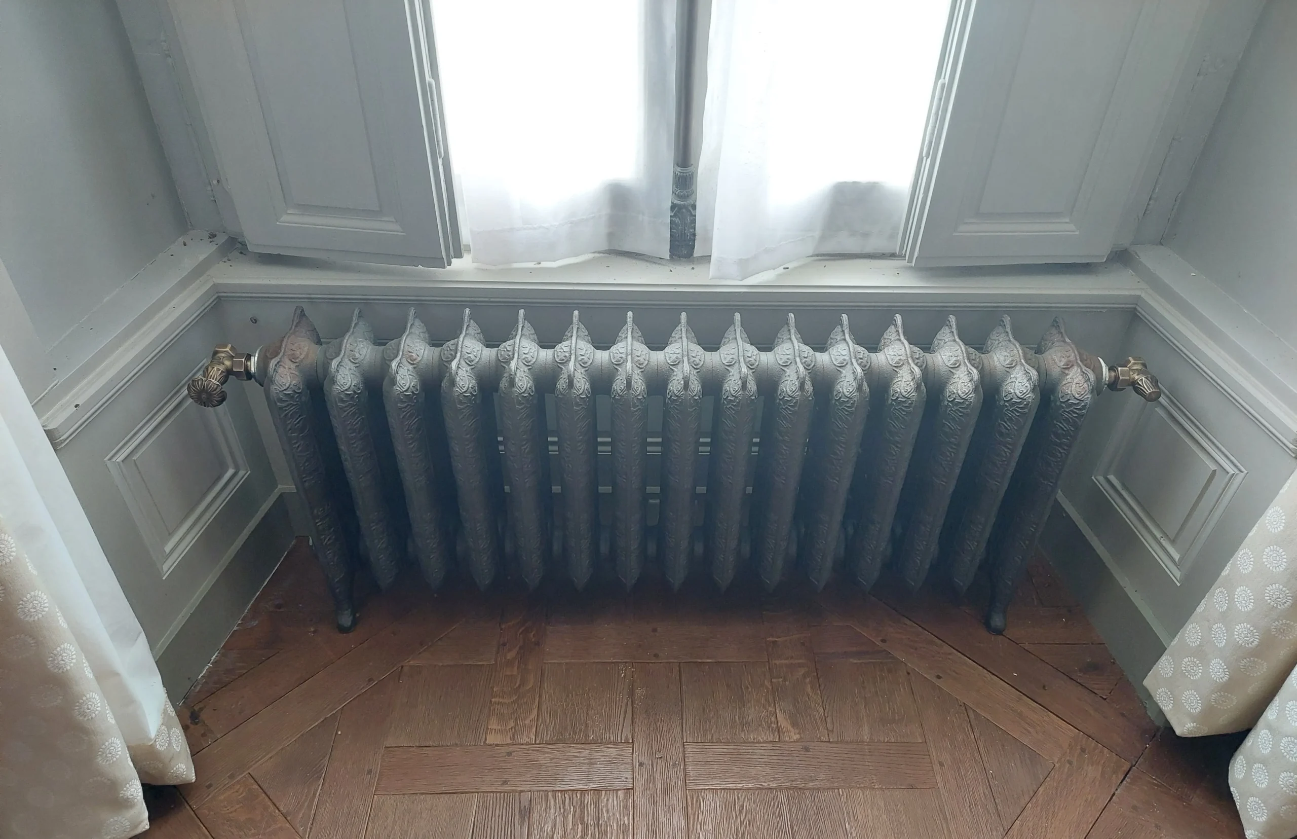 Une fois les besoins énergétiques optimisés, BSE a dimensionné une solution de géothermie sur nappe parfaitement adaptée au site. Le système repose sur un doublet de forages de 45 m de profondeur permettant un débit de 6m3/h pour alimenter deux pompes à chaleur d’une puissance totale de 42 kW. Cette installation couvre l’ensemble des besoins de chauffage grâce à des radiateurs basse température et assure également le rafraichissement via des panneaux rayonnants réversibles utilisant le géocooling. Des radiateurs décorés en fontes ont été choisis soigneusement pour s’intégrer harmonieusement au style du château et en préserver l’authenticité.